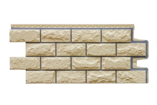 Фасадные полипропиленовые панели Grand Line Колотый камень Design шампань универсальный фасадный материал. За счёт своей прочности панели можно использовать как на цокольной части вашего дома, так на всей области фасада.