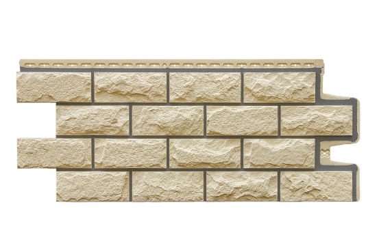 Фасадные полипропиленовые панели Grand Line Колотый камень Design бежевый ( шов RAL 7006 ) универсальный фасадный материал. За счёт своей прочности панели можно использовать как на цокольной части вашего дома, так на всей области фасада.