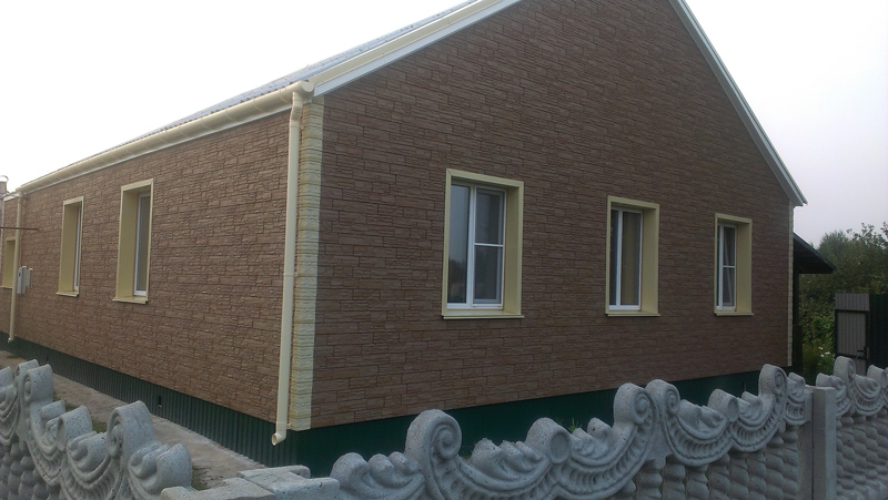 Фасадная панель Мелкий камень (Stein) Тёмный орех имитируют самый востребованный натуральный отделочный материал — камень-песчаник. Характеристики сайдинга Döcke из этой коллекции аналогичны показателям природного песчаника: устойчивость к низким температурам и воздействию влаги, стойкость к механическим повреждениям.