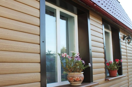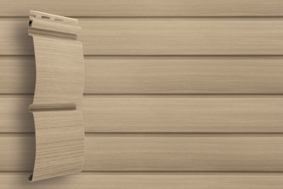 Геометрия панели сайдинга «Блок-хаус» Ясень повторяет форму натурального бруса из ценной породы дерева — карельской сосны возрастом не менее 100 лет. Текстура поверхности со специальными «сучками» достоверно имитирует деревянный фасад.