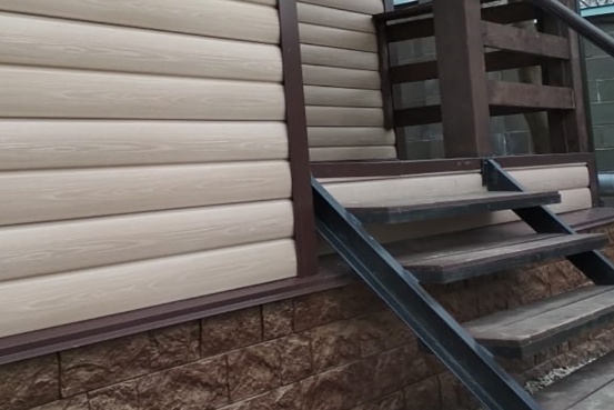 Фасад, облицованный светлым сайдингом в цвете «Орех», будет выглядеть превосходно и на фоне леса, и среди плодового сада, и на открытом участке. При строительстве 2-этажного дома сайдинг древесного оттенка можно комбинировать с цокольными панелями «под камень».