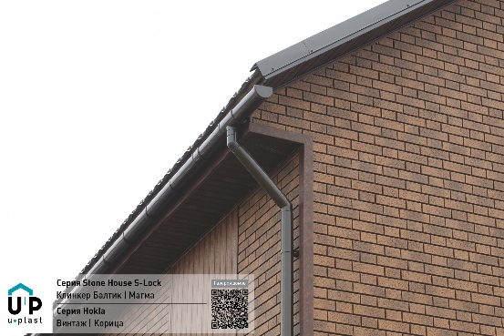 Сайдинг Ю-Пласт Стоун Хаус S-Lock Клинкер Балтик Цемент используется для отделки наружных стен зданий и декоративных конструкций, внешне имитирует клинкерный кирпич.