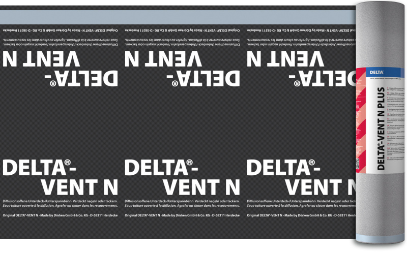 Классическая диффузионная трёхслойная мембрана для крыш с однослойной вентиляцией без сплошного настила. Монтируется внатяг на стропила, утеплитель устанавливается вплотную к мембране. Благодаря высокой паропроницаемости (значение Sd около 0,02 м) остаточная влажность утеплителя и стропил надежно выводится из конструкции крыши во внешнюю среду. С наружной стороны DELTA®-VENT N PLUS/DELTA®-VENT N осуществляет дополнительную защиту крыши от задуваемых через кровлю снега и дождя.