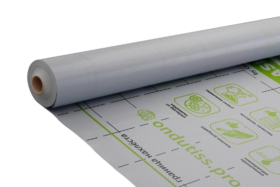 Двухслойная гидро-пароизоляционная плёнка для гидроизоляции полов влажных помещений, утеплённых цокольных перекрытий, неутеплённых кровель с металлическим или иным покрытием, а также для пароизоляции зданий. Значительно снижает риск образования наледи и сосулек, отводя тепловой поток от кровли.