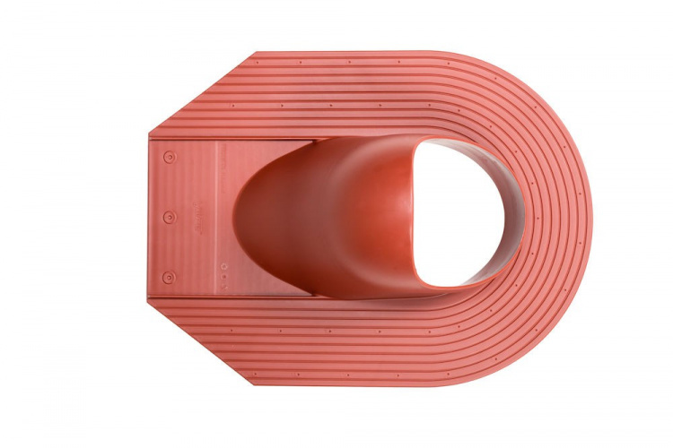 Проходной элемент для скатной битумной и сланцевой кровли. Комплект: проходной элемент, шаблон и набор крепежа. Устанавливается при монтаже кровельного материала.