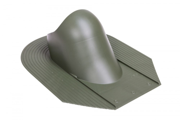 Проходной элемент для скатной битумной и сланцевой кровли. Комплект: проходной элемент, шаблон и набор крепежа. Устанавливается при монтаже кровельного материала.