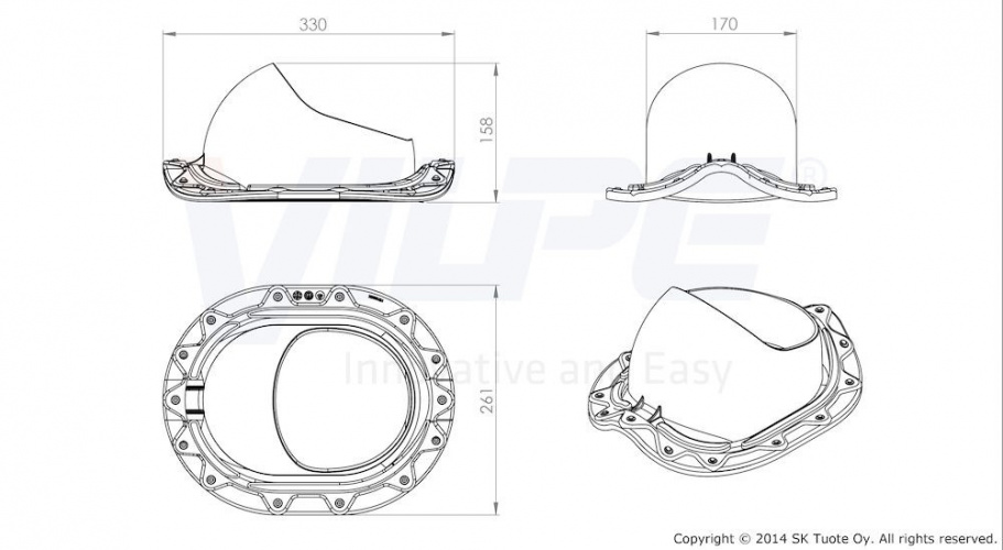 Проходной элемент для металлочерепицы с профилем Monterrey (ширина волны ≈ 183,3 мм, длина профиля min 350 мм, высота профиля ≈ 39 мм). Комплект: MUOTOKATE проходной элемент, кольцо гидрозатвора, инструкция по монтажу кольца гидрозатвора, MUOTOKATE шаблон, герметик на безуксусной основе и набор крепежа. Устанавливается при монтаже и на готовую кровлю.