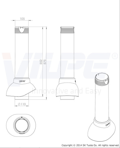 Вентиляционный выход канализационного стояка высотой 500 мм. Комплект: труба и набор крепежа. Для монтажа отдельно заказывается проходной элемент по типу кровельного материала.