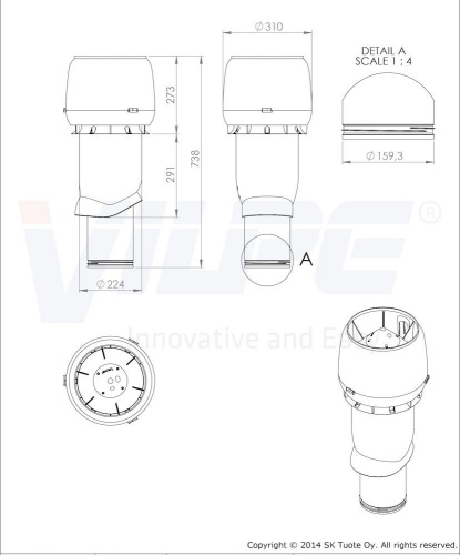 Изолированный вентиляционный выход с колпаком высотой 500 мм. Размеры: общая высота трубы с колпаком 500 мм, диаметр воздуховода 160 мм, внешний диаметр 225 мм. Комплект: труба с колпаком и набор крепежа. Для монтажа отдельно заказывается проходной элемент по типу кровельного материала.