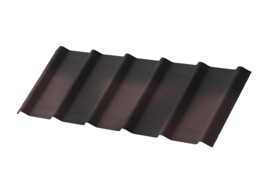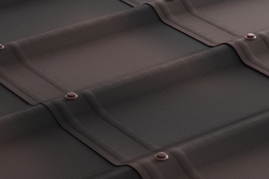 Черепица окрашена в 4 слоя: грунтовочная окраска плюс три декоративных слоя, которые защищают кровлю от выгорания.