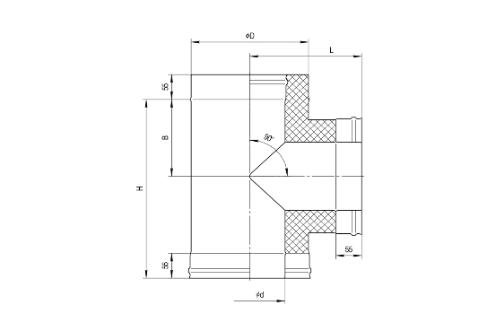 Предназначен для изменения направления дымового канала на угол 90°, используется в качестве очистного элемента, облегчает обслуживание дымохода.