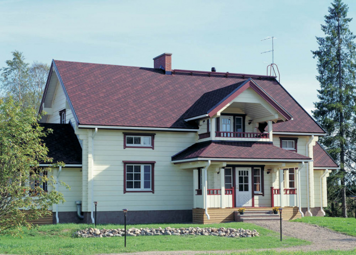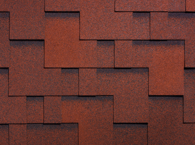 Черепица цвета Гранит из яркой, неординарной коллекции Runa обладает исключительными эстетическими и эксплуатационными качествами. Сочетание красного и чёрного цвета с обилием теней придаёт кровле сходство с природным камнем. Гибкий гонт с многочисленными прямыми углами создаёт имитацию настоящих деревянных дощечек разной формы, уложенных на крыше в средневековом стиле. Важно! Гибкая черепица RUNA Гранит продается кратно упаковкам