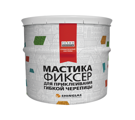 Мастика «Фиксер» производства ТехноНИКОЛЬ Мастика битумная ТехноНИКОЛЬ №23 («Фиксер») – это многокомпонентный состав, разработанный на основе битума с добавлением термоэластопласта, наполнителя, растворителя и технологических добавок. Наличие под рукой битумной кровельной мастики необходимо при монтаже гибкой черепицы Шинглас, а также при монтаже доборных элементов на скатных кровлях. Вяжущее наносят только на сухие и чистые поверхности из: кирпича; дерева; бетона; металла; керамики. При подмастичивании гибкой черепицы на скатах мастику следует наносить ровно столько сколько этого требуется.