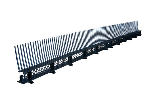 Универсальный вентиляционный элемент для установки на свес карниза, совмещенный с гребенкой для защиты от проникновения под кровлю птиц и грызунов.