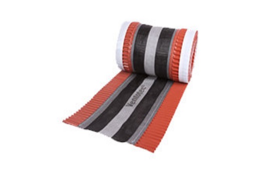 Ventotec NG – решение для конька и хребта. Гофрированные боковые ленты сделаны из алюминия и предназначена для низкопрофильной черепицы. Центральная часть изготовлена из нетканого материала для вентиляции подкровельного пространства с плотной полосой из флиса для крепления по центру. Центральная и боковые полосы для прочности дополнительно прошиты ниткой.