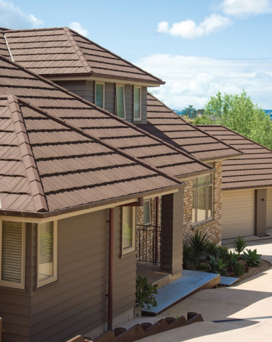 Композитная черепица Metrotile - это современная, красивая, оригинальная и престижная кровля Бельгийского производства. Изготавливается эта черепица из качественного стального листа толщиной до 9мм, который имеет двусторонее покрытие алюминцинковым сплавом. Покрывается лист из крошки натурального камня. Акриловый клей, использующийся для связующего звена металла и каменного покрытия, обеспечивает сохранность каменной крошки на поверхности листа. Композитная Черепица Metrotile имеет 10 коллекций и 24 цвета, что позволяет вам выбрать наиболее интересную, оригинальную и красивую черепицу для вашей кровли! Все коллекции представлены разнообразными природными цветами, в том чиcле новые двухцветные модели «с отливом». Этот материал, полностью имитирующий натуральную черепицу, сделает вашу кровлю индивидуальной и неповторимой. А разнообразность коллекций и цветов придаст вашей кровле эксклюзивный вид. Купить композитную черепицу Metrotile, а также просчитать необходимое количество материала на кровлю, вы можете обратившись в офисы продаж . Также дополнительно вы можете приобрести все необходимые комплектующие. Коллеция MetroShake II идеально подходит для классического стиля архитектуры и для создания четких линий здания.