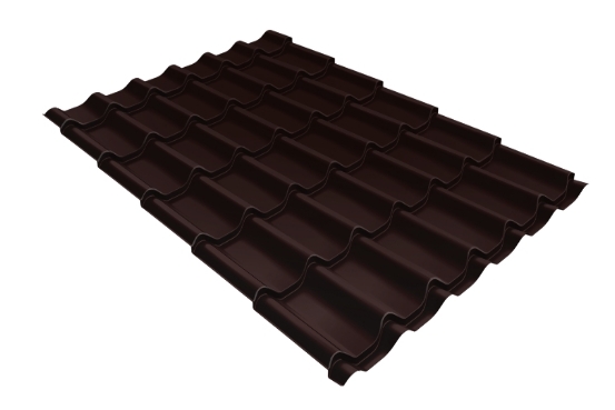 Металлочерепица Супермонтеррей в цвете 8017 (шоколадно-коричневый) является классическим и самым распространенным профилем. Производится из профилированного листа оцинкованной стали с нанесенным на него цветным полимерным покрытием и рисунком в виде волны, внешне имитирующим натуральную черепицу.