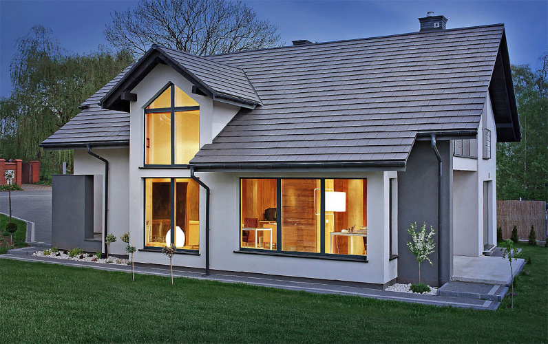 Турмалин - немецкая модель пазовой черепицы. Её гладкая поверхность благодаря специальному покрытию всегда остается чистой и красивой. Уложенная на крыше, она напоминает покрытие из полированных каменных плит. Изумительно подходит для домов в стиле High-Tech.