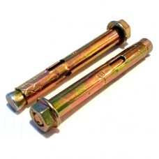 Анкерный болт с гайкой – крепеж строительного назначения для сквозного монтажа средних и тяжелых конструкций к основанию из железобетона, полнотелого кирпича или натурального камня. Анкерный болт с гайкой является крепежом фрикционного принципа действия, в котором усилие, удерживающее анкер в базовом материале создается за счет распора цанги в отверстии базового материала. Конструктивно анкерный болт с гайкой состоит из резьбовой шпильки с распорным конусом, гайки с прессшайбой и распорного элемента (цанги). При затягивании гайки шпилька воздействует на распорный конус, который в свою очередь раздвигает цангу и создает необходимое давление на стенки отверстия базового материала.