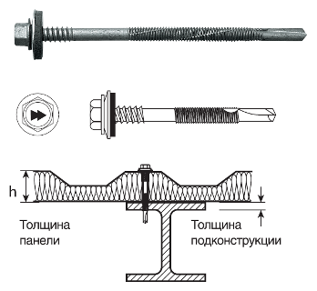 Преимущества: -Закаленная углеродистая сталь SAE 1022, антикоррозийное покрытие RUSPERT ® TYPE II -Шайба d = 19 мм из нержавеющей стали AISI 304 c EPDM -Увеличенная до 5 мм высота головки самосверлящего шурупа для лучшего удержания в бите