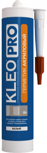 Герметик KLEO PRO Акриловый является уплотнителем, предназначенным для профессиональной долговечной герметизации на пористых и непористых поверхностях при внутренних и наружных работах. Применение: заполнение стыков и трещин в стенах; уплотнение соединительных швов окон и дверей; герметизация с последующей окраской поверхности. Свойства: высокая адгезия к основным строительным материалам; устойчив к атмосферным воздействиям; рекомендуемая температура применения от +7°C до +40°C (при более низких температурах отверждение происходит гораздо медленнее); после отверждения выдерживает температуру от -25°C до +80°C.