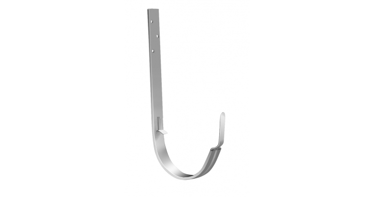 Служит для подвеса желоба на обрешетку, устанавливается до монтажа кровельного материала. Выполнен из оцинкованной стали с покрытием на основе полиуретана. Облегчает монтаж водосточной системы за счет расположения фиксатора с внешней стороны крюка, что позволяет устанавливать желоб и после монтажа кровельного материала.
