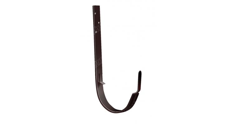 Служит для подвеса желоба на обрешетку, устанавливается до монтажа кровельного материала. Выполнен из оцинкованной стали с покрытием на основе полиуретана. Облегчает монтаж водосточной системы за счет расположения фиксатора с внешней стороны крюка, что позволяет устанавливать желоб и после монтажа кровельного материала.