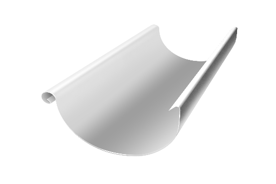 Предназначен для сбора дождевой воды с кровли. Желоб фиксируется на крюках, установленных с промежутком 600-900мм и обеспечивающих уклон 5 мм на погонный метр.